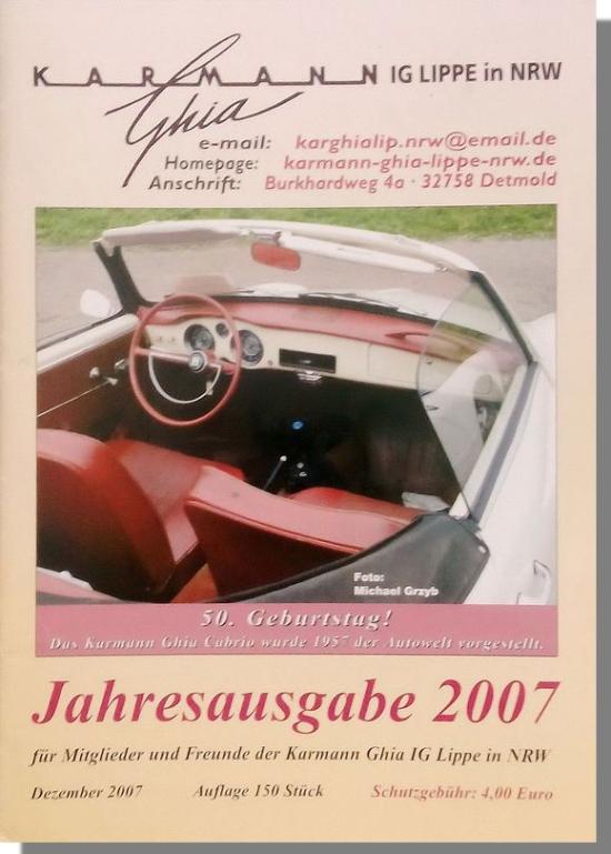 Veranstaltungen: 1. Karmann-Ghia-Treffen in Mönchengladbach der KG IG Lippe in NRW, 4. Karmann Ghia Treffen der Karmann Ghia IG Südheide, 1. Karmann-Ghia-Treffen in Vicenza des KG Club Italia, 25. International-Meeting des Karmann Ghia Owners Club GB.